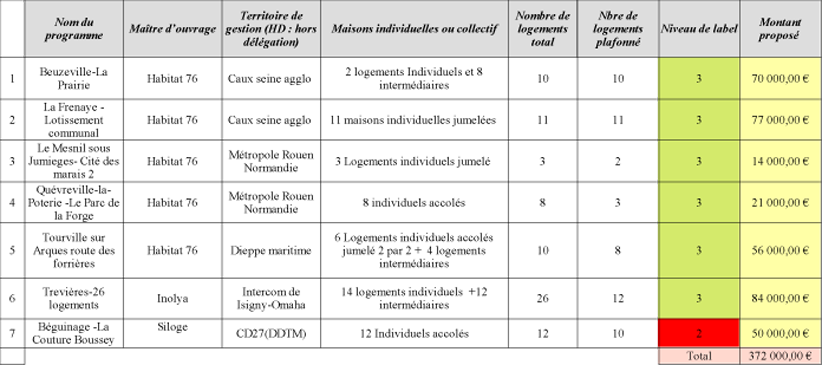 - des opérations d’offre nouvelle de logements sociaux localisées en Normandie et inscrites en programmation de l’année de l’AAP,