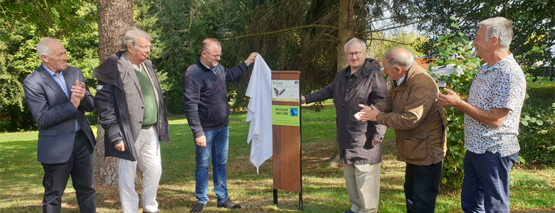 Le 22 septembre dernier, le président de la Fondation hospitalière de la Miséricorde a inauguré sur le site du centre hospitalier d’Hérouville Saint-Clair des refuges pour la biodiversité pour ce parc (4ha) et ceux des l’EHPAD de Verson (1 ha) et Cormelles-le-Royal (1,5 ha), et ce, en présence des présidents du Groupe Mammalogique Normand (GMN), du Groupe Ornithologique Normand (GONm) et de l’adjoint à l’environnement de la ville d’Hérouville Saint-Clair. |